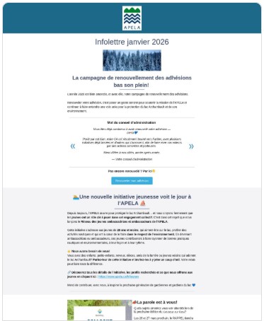 Fondée en 1961, l’association pour la protection de l’environnement du lac Archambault (APELA) est une organisation sans but lucratif vouée à la conservation de la santé environnementale du lac Archambault, au maintien de l’intégrité de ses rives, de ses bassins versants et des paysages naturels qui l’entourent.